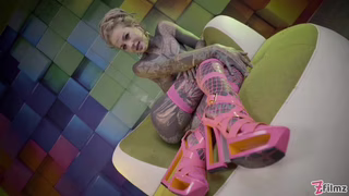 Mocno wytatuowana teen rozciąga odbyt gigantycznym dildo